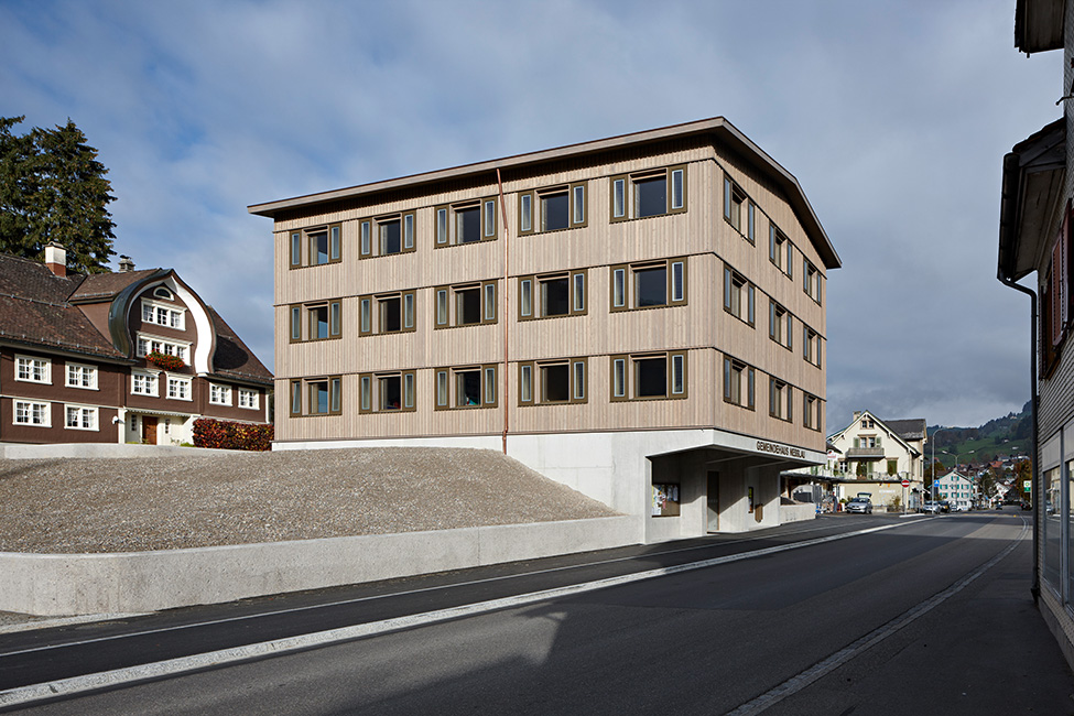 Nach einer Bauzeit von rund 14 Monaten konnte das neue Gemeindehaus im September 2015 bezogen werden. Das Gemeindehaus wurde über dem Untergeschoss als dreigeschossiger Holzelementbau mit einem zentralen Treppenkern aus Sichtbeton erstellt.